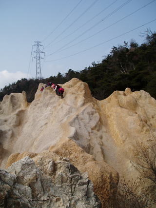 | 岩梯子 岩梯子は、七右衛門穴と並ぶ荒地山の名所で、楽しい岩の階段である。 場所:荒地山 |