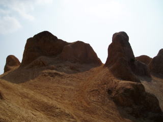 | 万物相のエリアは、明確なものではないが、あえて言えば今人が歩いている尾根の右側部分と推定される。左側は墓場エリアとなる。 | 尾根から東側を見下ろしたところ | |