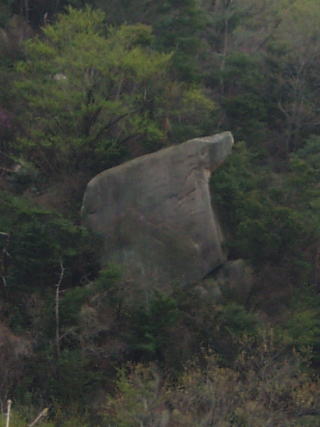 | この岩の形はまさしく烏帽子である。 | 別の角度から見た烏帽子岩。とても烏帽子とは言えない代物である。 | |||