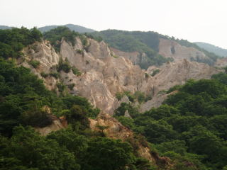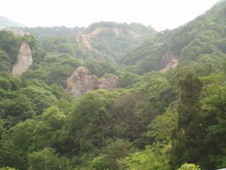 | 蓬莱峡の南側にある座頭谷 | 座頭谷の景観、まるで中世の城のようだ。 | |||