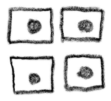 左の刻印の拡大写真 中央に黒点を有する正方形を四つ組み合わせた四つ目状の刻印で、 福井藩松平家67万石の刻印である。 (文献@A参照) 本件は、芦屋市文化財課の調査によるものです。御協力を感謝いたします。 |
