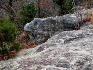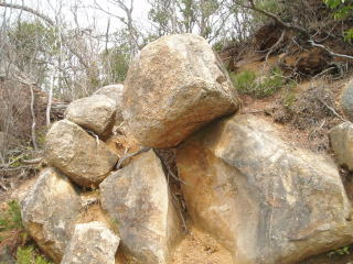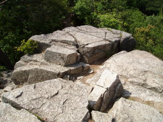 | 変哲もない岩ではあるが、ここからの眺めは良い。 | 下の方にも岩が多数崩れている。 | |||