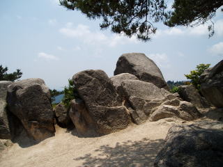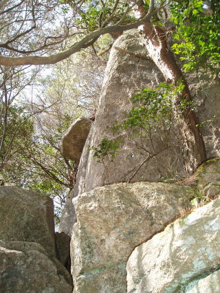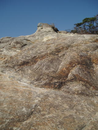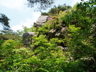 | 天狗岩遠望 | 天狗岩頂部の広場。 どこか荒地山ボルダー群のプラクティススラブを思い出させる光景だ。 |