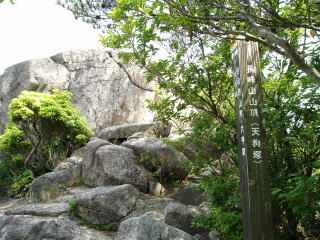 | 多聞寺系列 修行岩 (清盛の涼み岩) シュラインロードを下りきった北側に古寺山と言ういかにも何かありそうな山がある。 それで、今日も色々な調査で忙しい行程であったが、どうしても寄り道したくなり、その山に登った。 道はややこしく、所々に「本堂跡」、「護摩堂跡」の表示板がかかっている。 昔ここに多聞寺という寺があり、平清盛が福原に都を移したときに都の鬼門(北東)護る寺として大切にした。その後、源平合戦で源義経が一の谷を攻める時に、その道案内を断ったために焼き払われそうである。 頂上には、写真のような岩が鎮座していた。 場所:古寺山山頂 道に迷いやすいので注意のこと。 |
