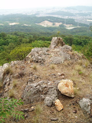 | 天狗岩の正面 | 天狗岩の上部、眺めは抜群だ。 菊水山の電波塔が見える。 |