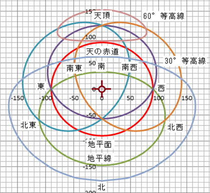 ③北緯は星空の視界の移動にかかわるが、汝陰侯墓を基準した地平面の移動は赤緯にして