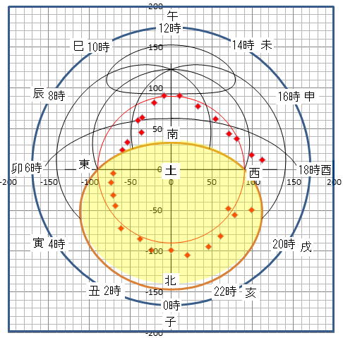 星座盤のグラフの計算と出力は、マイクロソフトのエクセルを使用した。