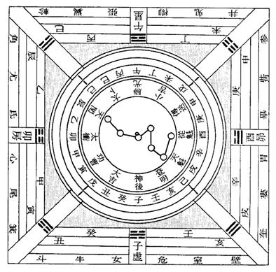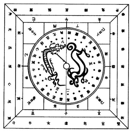 この画は外箱の中心に篆書された「斗(北斗)」字があり、その右側(東方を示す)には「龍」、