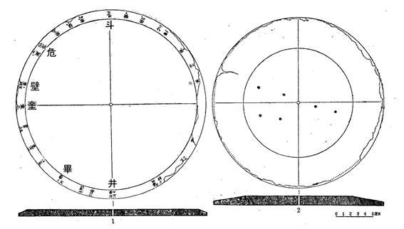 ①曾候乙墓出土漆画は、二十八宿の回転に関する天文原理を二種類の方法で