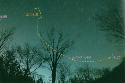 図20 春の宵の空で東の空にのぼりはじめた春の大曲線(文献18)