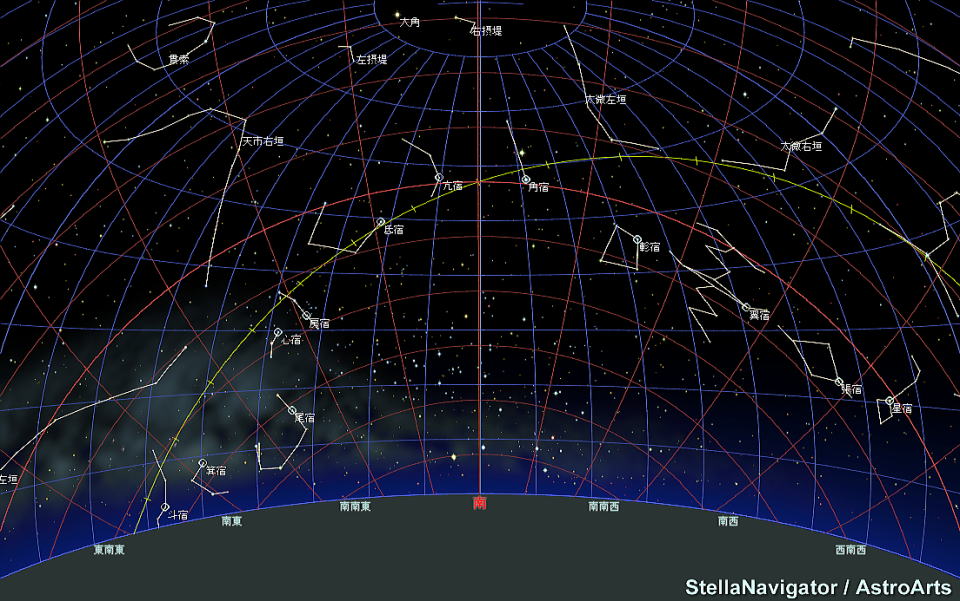 午前0時に青龍の頭部が南中し、亢から氐房心尾箕の星宿が南東にかけて