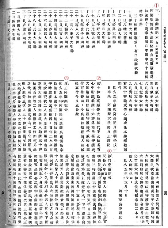 ②『台記』の三十番神が如法経に取り込まれた初見は、『門葉記』にある弘長元年(1261)五月八日の「教源記」である。
