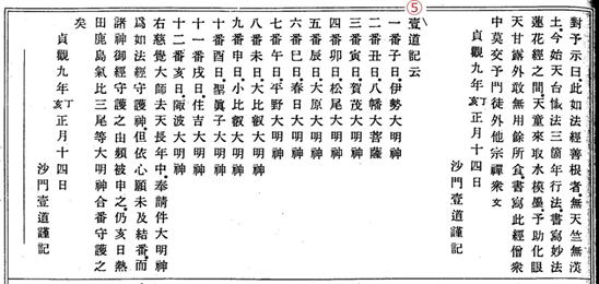 ⑤壱道の十二番神は、『台記』の三十番神の十日伊勢から二十一日八王子の間の十二社から、