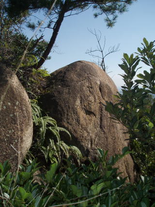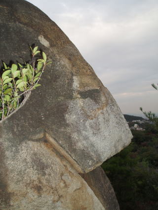 | 展望岩1 この岩に登ると西宮の市街が一望できる。 場所:あこがれランドのかなり先 あこがれ1の上を通る道をゆくと、行き止まりのような所にある。道は歩きやすい。 |