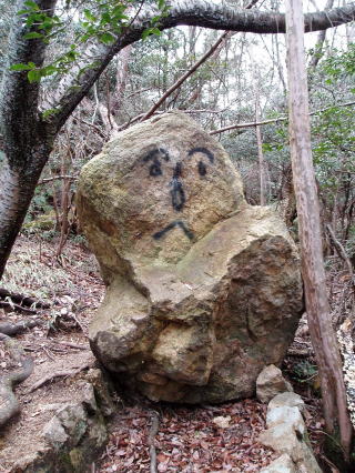 | モアイ岩 イースター島のモアイ像に似た岩が 荒地山の中腹にある。 その岩は、人が南を向いているように見える。 場所:荒地山中部中腹 水場のある小屋のルート |