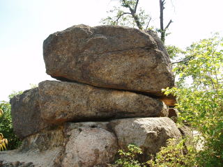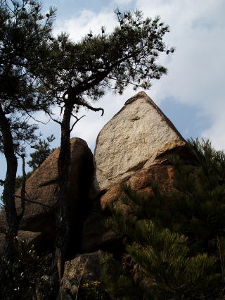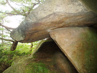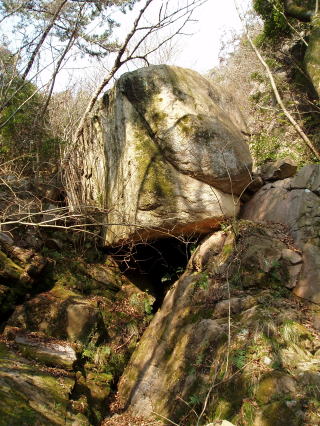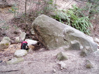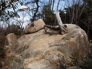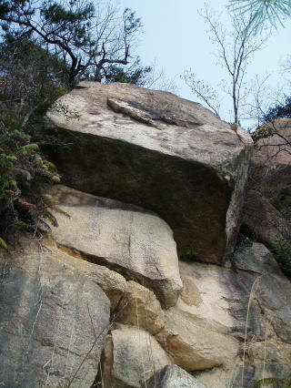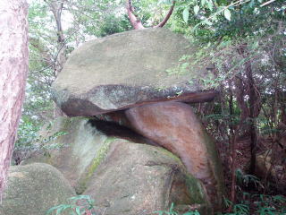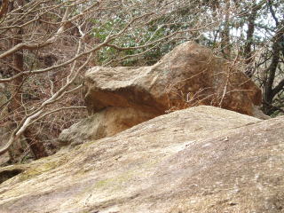 | 三段重ね岩 場所:横池東方 荒地山の高座谷を挟んだ尾根。近くにお多福山に向かうハイキング道が通っている。 |