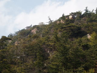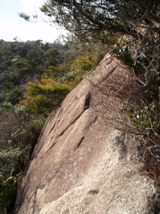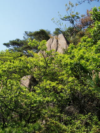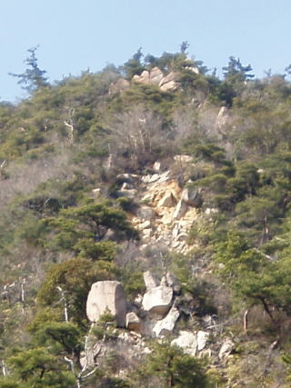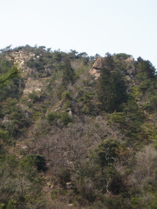 荒地山道畦谷北尾根(石のベンチ)から 見たはげ岩。写真左端の岩は岩富士。 |
