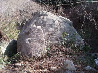 | 座礁船 その岩は、座礁して大破した船の舳先のように見える。 場所:住吉川右岸ルート、渡河地点のあたりの川べりにある。 |