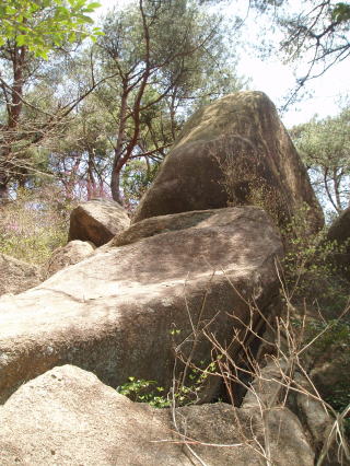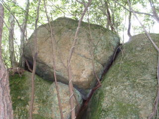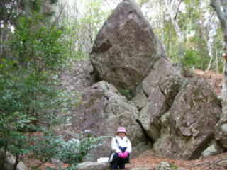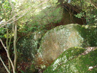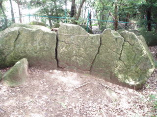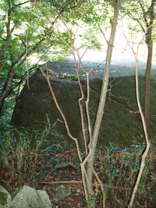 | 図15A 西に面した漢人岩(あやひといわ) 朝日を拝む方向が磐座の正面とすれば この写真が正面に相当する。 幅 南北に約6m |