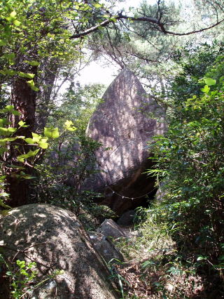 図13 西寒多(ささむた)神社の(大分市) 奥の宮(本宮山)にある剣岩の磐座(文献11) |