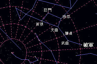 587年の蘇我馬子と物部守屋の合戦の時、白膠木(ぬりで)で四天王の像を造り戦いの勝利を祈願した厩戸皇子についての日本書紀の記述は別として、厩戸皇子が形勢の不利を打開するために秘かに祈ったのは北斗七星の「破軍星」ではないだろうか。だから、戦いの勝利後、報恩のために創建された四天王寺に七星剣が奉納されたのではないだろうか。