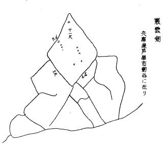 | 図23 四天王寺 聖徳太子佩用の七星剣(文献20) 全長62.1cm 中央に北斗七星の星座が刻まれている。 |