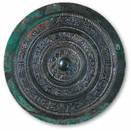 前漢鏡 重圏銘帯鏡の解説 太い界圏(かいけん)帯で区切られた環状のスペースに内外二重の銘帯を入れた鏡。銘は、過去に異体字銘(いたいじめい)鏡な どと呼ばれたほどの独自の篆書(てんしょ)体で書かれている。省略された文字が極めて多く、これのみでは文意が通じないが、鏡の銘から補うことができる。 長い中国の鏡の歴史の中でも、銘文を主文様とする鏡は極めて少なく、唐以前では連弧文(れんこもん)銘帯鏡や小型の単圏(たんけん)銘帯鏡などの前1世紀の銘帯鏡群のみと言える。 銘内容は、汨羅(べきら)に身を投じた屈原(くつげん)の故事で著名な「楚辞(そじ)」の内容に大変近縁のもので、君主に用い られない失意の心境をうたっている。この種の鏡の製作工人が保持していた思想背景が、「楚辞」を 伝承したグループと大変近いことは興味深い。 日本では、弥生中期の前原(まえばら)市三雲南小路、飯塚市立岩(たていわ)堀田、春日市須玖岡本などの著名遺跡や神戸市森北町遺跡などからも出土している。 出典 村上開明堂 中国古鏡展 http://www.murakami-kaimeido.co.jp/kokyo/kan/kan_04.html |