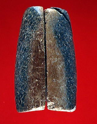 銅鐸の身は鈕側より見ると銀杏形であり、