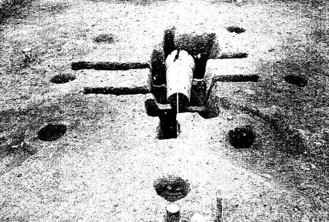 復元された埋納坑は径約0.3m、深さ約0.26m。