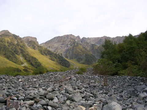 | 上高地から穂高岳連峰 | 岳沢登山口 | |