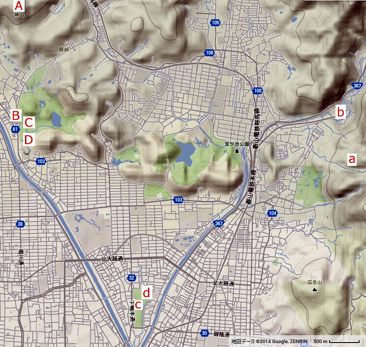 神事の盛大化とともに麓の御囲と船つなぎに移転したと考えられる。 (注2)御休間木との磐座に立てられた榊(御迎え榊)は、別雷神を迎える御祖神を表象する。 尚、御休間木については文献16を参照願いたい。 (注3)上社の御旅所について、『瀬見小河』に次の記述がある。(文献11①) 「別雷神社より二町ばかり北に御旅所とて在り、 道の西なる岡を御あれ所の壇と称ひて、祭の時、其處に假宮建て祭儀ありとぞ」 詳細は不明であるが、「御あれ所の壇」とは下社の切芝に相当するものと思われる。 ![]() 図6 平安時代の上社と下社におけるみあれ神事の流れ(Google ZENRIN) A:神山 B:御囲(御休間木) C:御あれ所の壇 D:上賀茂神社 a:御蔭山 b:船つなぎ(磐座) c:切芝 d:下鴨神社 上社の御阿礼神事は夜の秘儀であり、 下社はきらびやかな行粧を伴うため両者は別ものと考えられる場合が多いが、本質は同じである。 みあれ神事とは、「賀茂旧記」にのっとり御祖が別雷神を迎える神事であり、 両者の差は、元々別雷神と御祖神の一体の祭が上社と下社の分離により祭神の分離がなされたため、 上社においては御祖神が、下社においては別雷神が隠されているだけである。 5『河海抄』にもとづく作品の解釈 「みあれ詣」の中で、良く話題になるのが「こころやましき」である。 大多数の注釈は「紫の上の御供と見られては面白くない」である。 しかし、紫の上の行き先が『河海抄』による下社の切芝であれば、この解釈は異なってくる。 ここで考えられることは、源氏の同行が想定されることである。 『新日本古典文学大系21』は御車の台数に着目し、 「紫上の六条院への転居の折は御車十五であった。(「少女(乙女)」) 源氏同行なので二十でも事そぎたるになる」と述べている。(文献17) 今回のみあれ詣は、原文「六條院の御いそぎは、廿日あまりのほどなりけり」に続くもので、 明石の姫君の入内を前にして今や絶頂期にある源氏がかつて失意のうちに須磨に赴いた頃を思い うき世をば今ぞわかるるとどまらむ名をばただすの神にまかせて 糺(ただす)の神へ感謝の念を奉げたものと想像される。 とすれば、今回のみあれ詣は源氏の意向によるもので、須磨の所産である明石の姫君の同行も考えられる。 糺の神は元々糺の森の地主神であったが、後に下社の祭神に包摂されるに至ったと考えられる。 切芝は、別雷神のあらわれる以前から糺の神の御座所であった。 紫の上は気配りの人であるからいつものように等しく女房達に声をかけたが、 この時、源氏と紫の上のみあれ詣にかける思いは誰もが察知していたと思われる。 それなのに、誘いに応じてぞろぞろとついてゆくのは迷惑をかけるのではないだろうか? 女房達はそれを気に病んで同行を辞退したのであろう。 つまり、「こころやましき」は気に病む、心配することと解釈される。 作者は須磨の帖を下地に、「みあれ」のこぢんまりとした祭と、 酉の日の壮麗な賀茂祭を対比して描いたと思われる。 紫の上は、御供が少なくともそれはそれで凛とした風情があり、 また賀茂祭の群衆の中でも源氏の正妻としての威厳を保っている。 作者が表現したかったのは、どのような状況においても輝きを失わない紫の上のそうした姿ではないだろうか。 6 結論 『河海抄』の注釈の検討によれば、紫の上は午の日に下鴨神社の切芝神事に参詣したと推定される。 神館の御生所とは御旅所である切芝を指すものであり、 切芝神事こそ、絶頂期にある源氏と紫の上がつらかった昔を思い、内々に詣でるにふさわしい場であろう。 ![]() 図7 切芝神事 神馬の前で舞われる東游(あずまあそび)(HP「まさとの写真館」) 参考文献 1「下鴨神社 平安時代の御生神事 御蔭山の磐座祭祀」 江頭務 (『イワクラ学会会報』26号 2013 所収) 2「上賀茂神社嘉元年中行事 御阿礼の祭祀構造の諸問題」 江頭務 (『イワクラ学会会報』第25号 2012 所収) 3『新編国歌大観』第2巻 私家集編 歌集 角川書店 1984 ①源順p528 歌番号2527 ②西行p528 歌番号2528 ③公朝p821 歌番号15720 4『新編国歌大観』第3巻 私家集編Ⅰ 歌集 角川書店 1985 藤原俊成p632 歌番号623 5『河海抄(かかいしょう)』『花鳥余情(かちょうよせい、かちょうよじょう)』 (『国文注釈全書』 室松岩雄編 国学院大学出版部 1908 所収) 6『和歌色葉』(『日本歌学大系』第3巻 p256 佐佐木信綱 風間書房 1972) 7『日本古代の呪祷と説話』 p103 土橋寛 塙書房 1989 8『源氏物語事典』 p476 池田亀鑑編 東京堂出版 1989 9「鴨社神館の所在」 新木直人 (『古代文化』43-7 ①p36 ②p33 ③p35 ④p32 ⑤p37 1991 所収) 10『新訂増補 国史大系』27巻 p30~31 吉川弘文館 1965 11『瀬見小河』伴信友 安永二年(1773)~弘化三年(1846) (『神道体系 神社編八 賀茂』 ①p79 ②p78 1984 所収) 12『下鴨神社 糺の森』①p83~85 ②p101 新木直人 ナカニシヤ出版 1993 13『葵祭の始原の祭り 御生神事 御蔭祭を探る』新木直人 ナカニシヤ出版 2008 ①表紙裏の地図 ②p33~35 ③p46~47 14『京の葵祭展』p67 京都文化博物館 2003 15「下鴨神社の上賀茂神社からの分