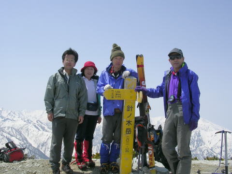 ステップのない所を登ると靴が潜るので、ステップを頼りに登る。ようやく針ノ木の頭に着いた。