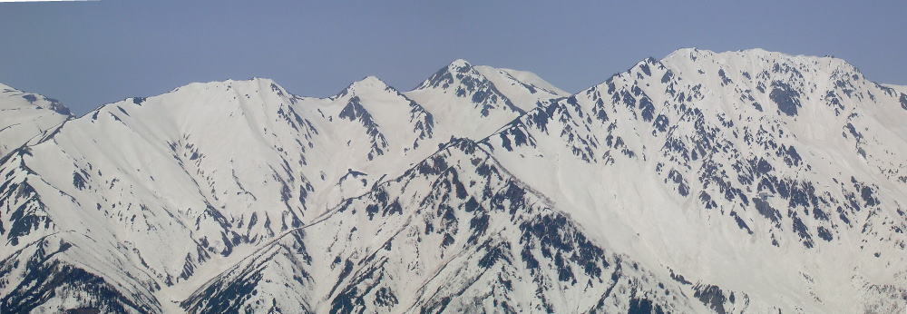 朝起きると、天気予報どおりの快晴であった。出発準備を整えた後、しっかりと日焼け止めクリームを塗ってから出発する。駐車場を出てアスファルトの道をしばらくいくと、残雪を抱いた山が目の中に飛び込んでくる。