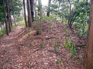 直木地図の一里塚は、下水谷の上流の二股に分かれた谷筋に挟まれた尾根上にある。