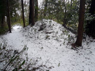 図2 雪をかぶった一里塚 塚の形がよくわかる。 |