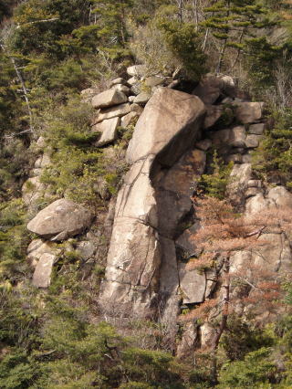 | (3) プロペラ岩 10m 場所:上記の「無名の岩」より谷底に向かって下ったところにある。 |