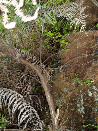 これが右上するハング気味のハンドクラック? 羊歯が生い茂り見る影もない。 |