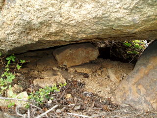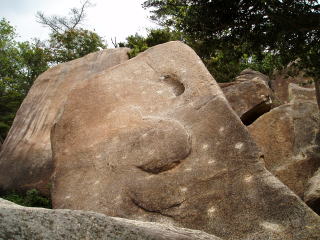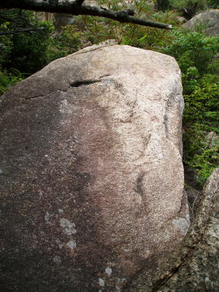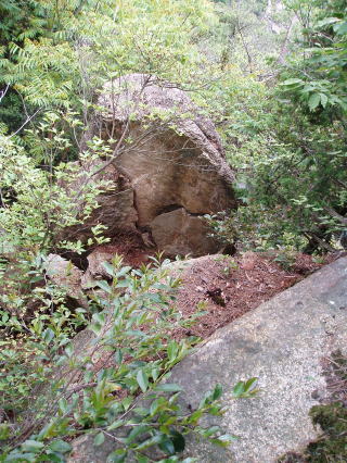 | こうしてみると四角い岩である。 | 実は、この上に大きな岩があったと想定される。 | |