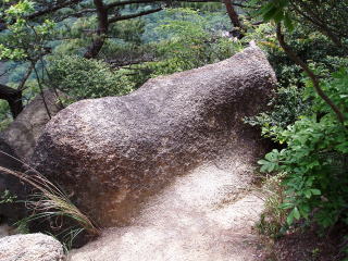 | 「やさしい」に着目してこの岩を選定 今は、登山道の通り道となっている。 |