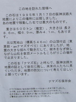 | 古代文字が書かれたナマズ石 | ナマズ石保存会の説明板 | |