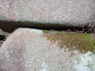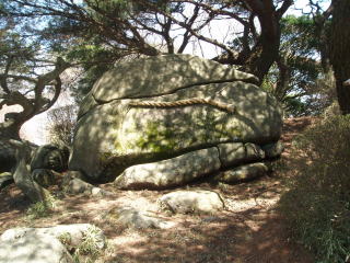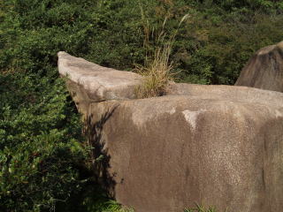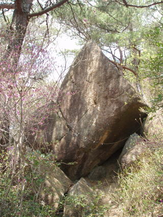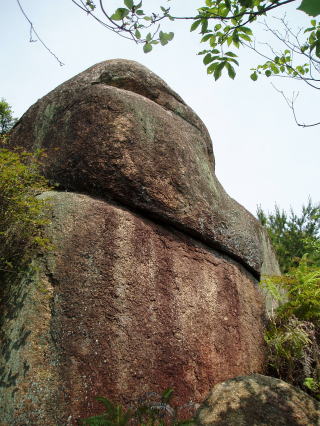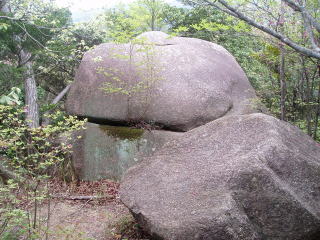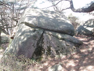 | 蟹の甲羅のような岩が鎮座する。 | 二枚重ねの大きな岩である。 | |