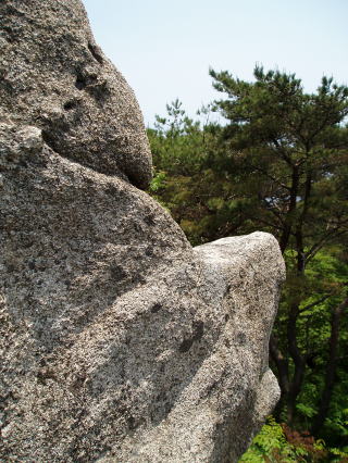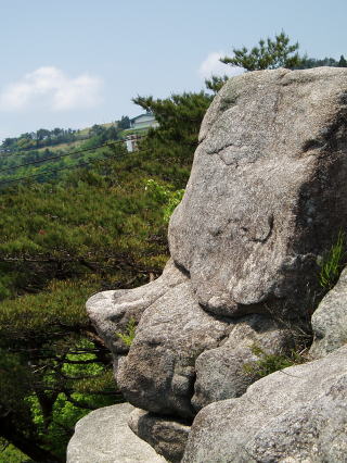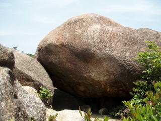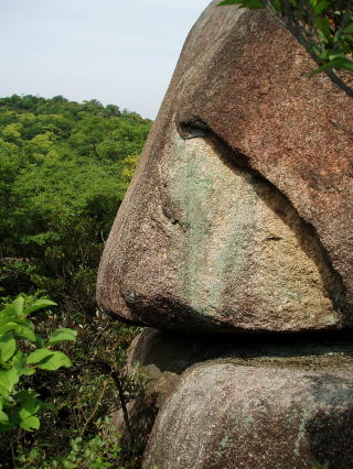 | 下記の亀の岩から望む命の岩 | 命の岩の上部の接近写真 | |