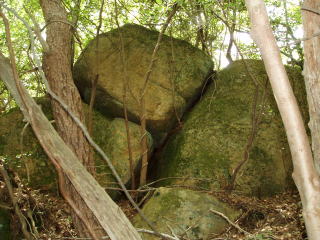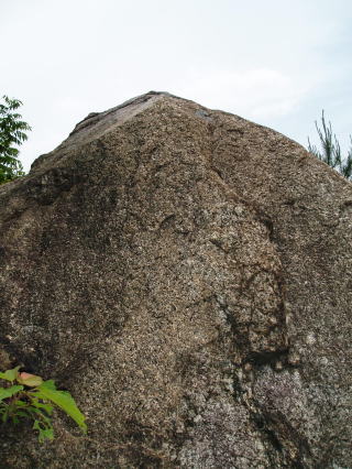 | 西に面した漢人岩(あやひといわ) 朝日を拝む方向が磐座の正面とすれば、この写真が正面に相当する。 幅 南北に約6m |