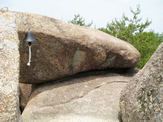 | 後方は甲山 | 岩に取り付けられた黒い鐘 | |
