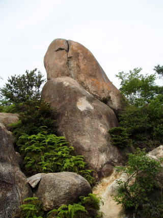 | 命の岩 (みこと) この岩を、イザナギミの命の磐座だという人もいる。斜めに立つ二本の柱状の岩である。 場所:北山北部 |