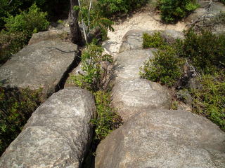 | 稜線から見たふたつ岩 | 東面の磐座を思わせる段差 | |