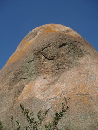 | 人形 (ひとがた) バットマンとよばれる人の形をしたボルダーがある。人形は、身代わりとして祭祀によく用いられる。 場所:北山 |