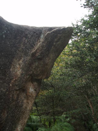 | すこし鼻は低いが、確かに天狗である。 | 左の岩の裏側を写したもの | |