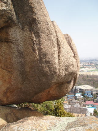 | ピーク 北山ボルダーの中に、人の顔似た岩がもう一つある。 場所:北山 参照調査報告 古代北山・太陽観測施設説の 調査報告 |