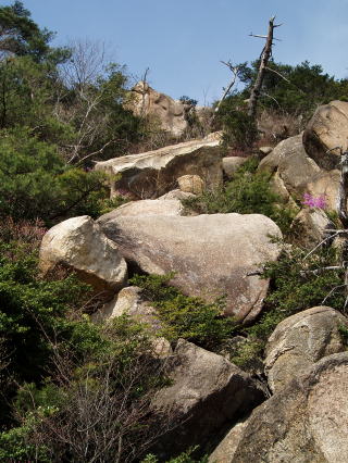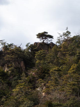 | スタートはここから 黒岩 場所:荒地山の頂上より高座谷に下る道の中ほど左側にある。 松の生えた巨岩が目印 |
